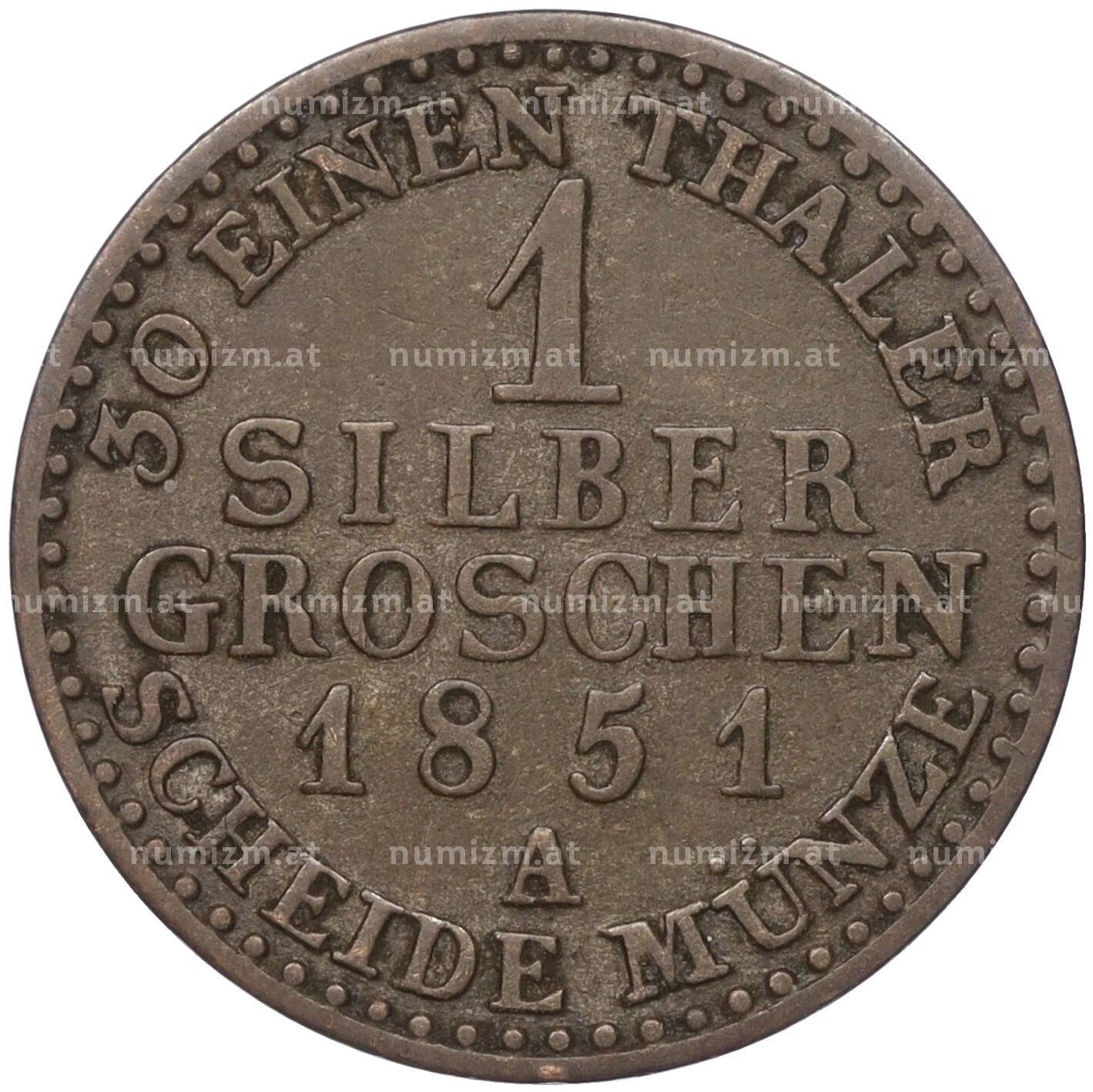Купить 1 серебряный грош 1851 года А Пруссия по привлекательной цене можно в нашем интернет-магазине — Вам достаточно оформить заказ на сайте. Все монеты, представленные в каталоге, находятся в наличии на нашем складе.