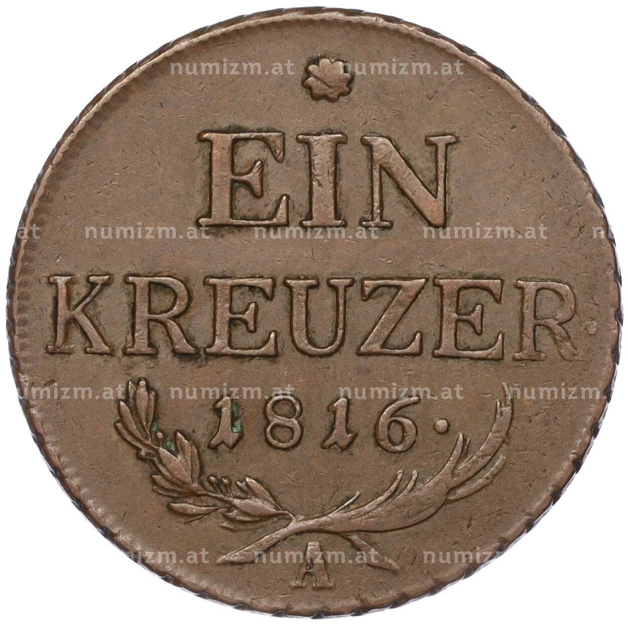 Купить 1 крейцер 1816 года А Австрия по привлекательной цене можно в нашем интернет-магазине — Вам достаточно оформить заказ на сайте. Все монеты, представленные в каталоге, находятся в наличии на нашем складе.