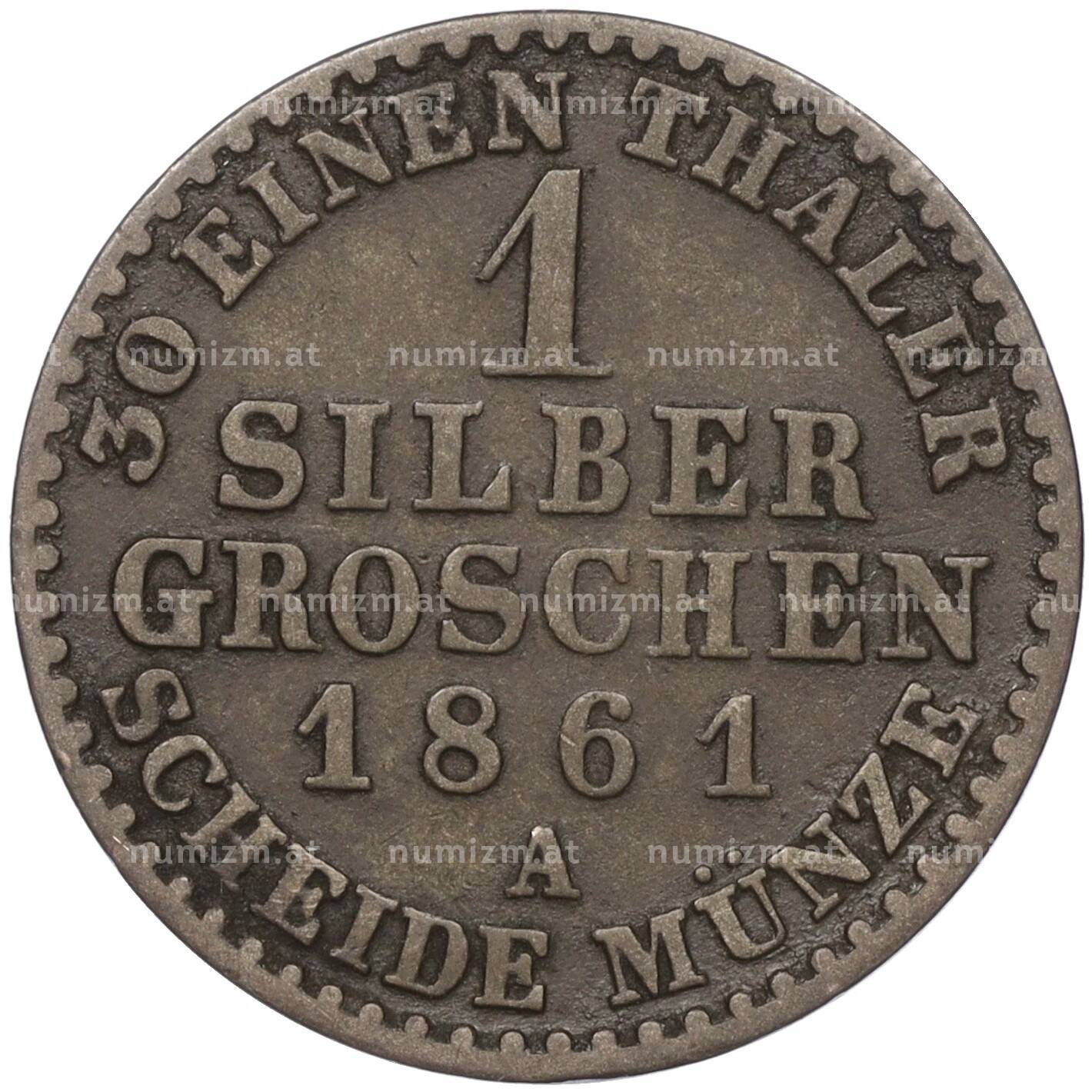 20.01.2025Интернет магазин «Нумизмат» предлагает приобрести 1 серебряный грош 1861 года Пруссия.