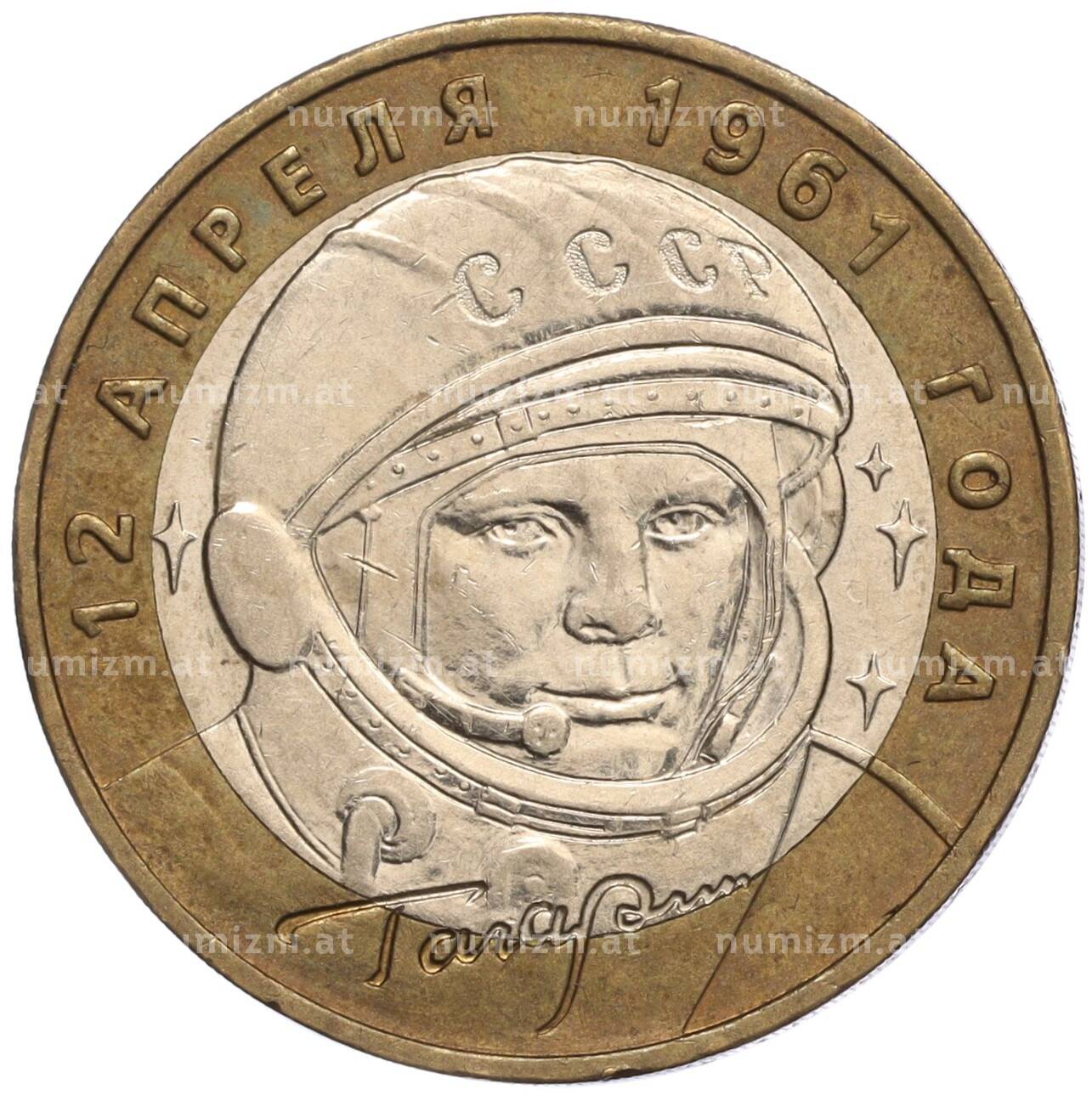 Монета 10 рублей 2001 года ММД «Гагарин» (Артикул: K11-97959): подробные характеристики, качественные фотографии в высоком разрешении, низкая цена.