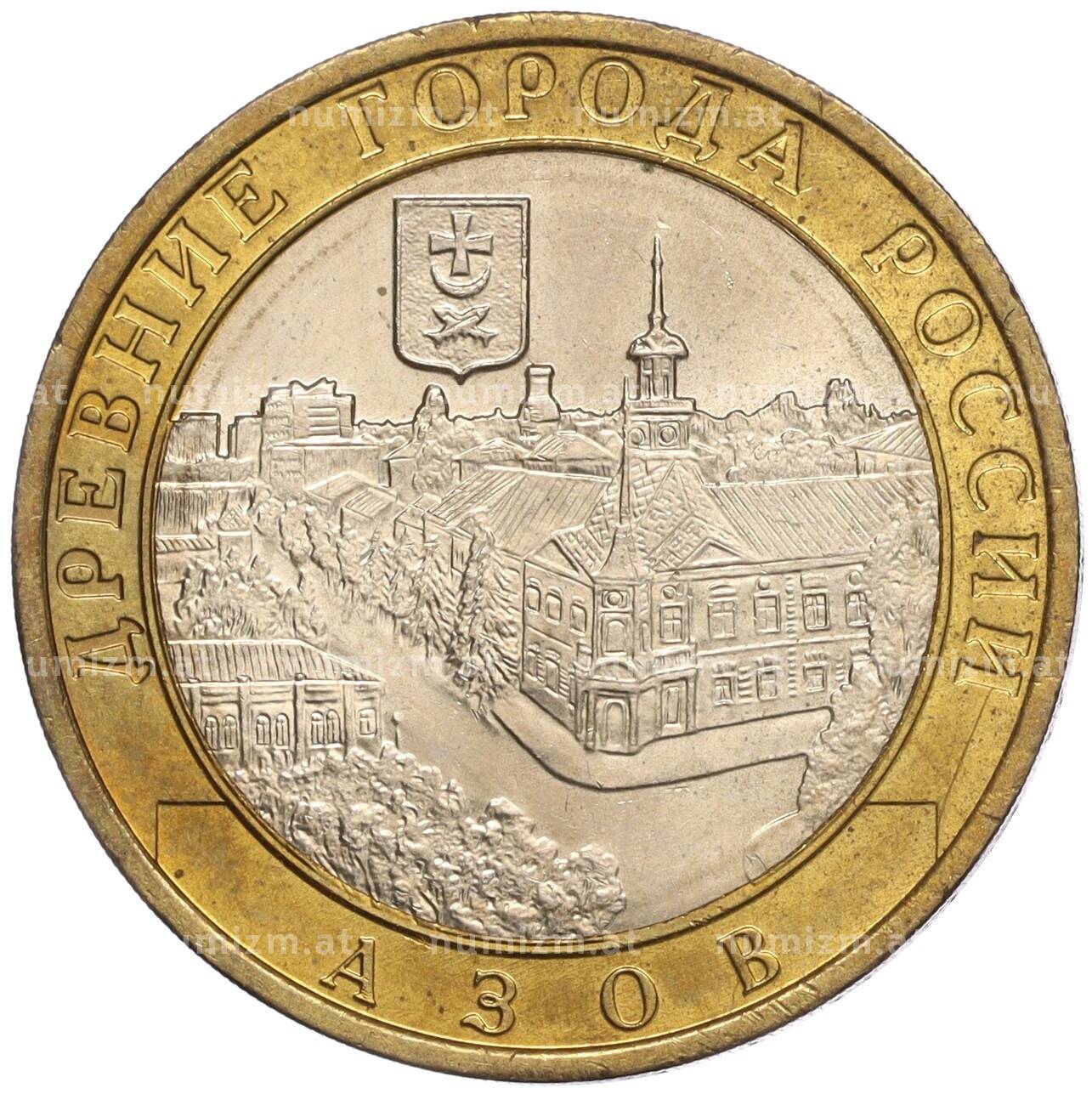 Интернет магазин «Нумизмат» предлагает приобрести 10 рублей 2008 года ММД «Древние города России — Азов».