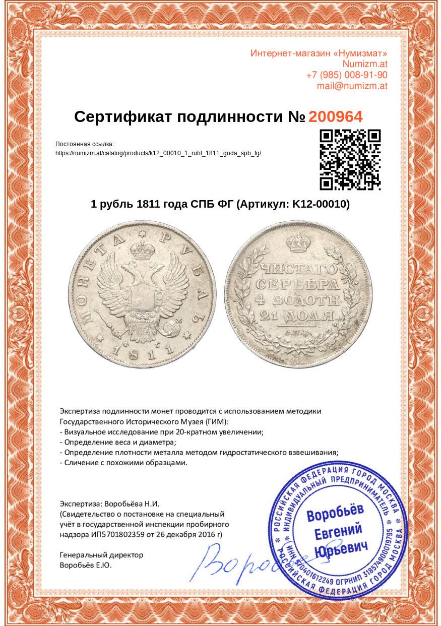 Купить 1 рубль 1811 года СПБ ФГ по привлекательной цене можно в нашем интернет-магазине — Вам достаточно оформить заказ на сайте. Все монеты, представленные в каталоге, находятся в наличии на нашем складе.
