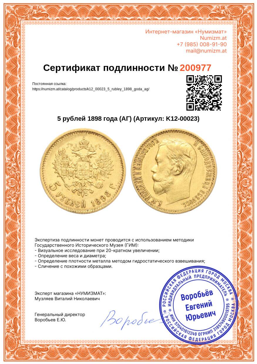 Купить 5 рублей 1898 года (АГ) по привлекательной цене можно в нашем интернет-магазине — Вам достаточно оформить заказ на сайте. Все монеты, представленные в каталоге, находятся в наличии на нашем складе.