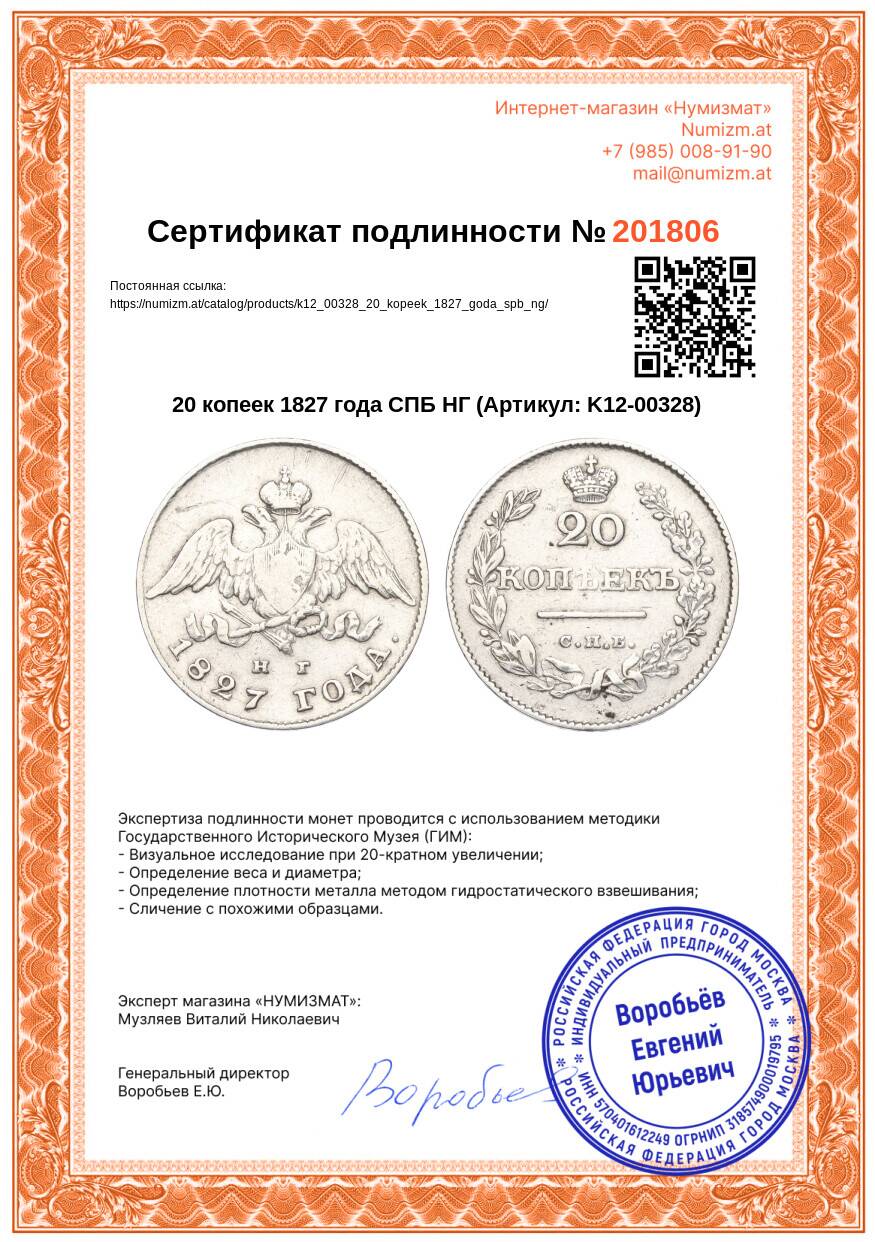 Купить 20 копеек 1827 года СПБ НГ по привлекательной цене можно в нашем интернет-магазине — Вам достаточно оформить заказ на сайте. Все монеты, представленные в каталоге, находятся в наличии на нашем складе.