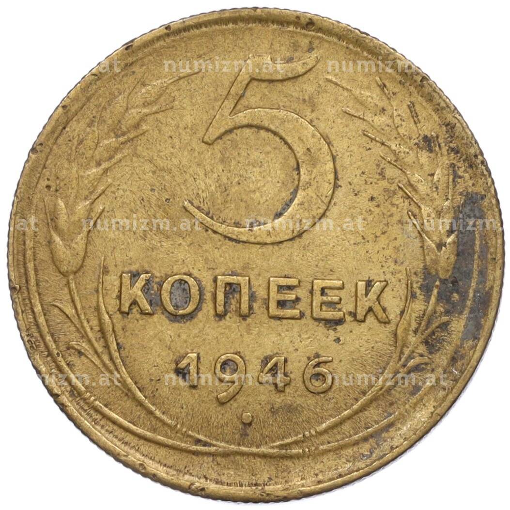 Монета 5 копеек 1946 года (Артикул: K12-00611): подробные характеристики, качественные фотографии в высоком разрешении, низкая цена.