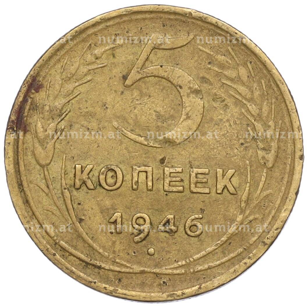 Монета 5 копеек 1946 года (Артикул: K12-00615): подробные характеристики, качественные фотографии в высоком разрешении, низкая цена.
