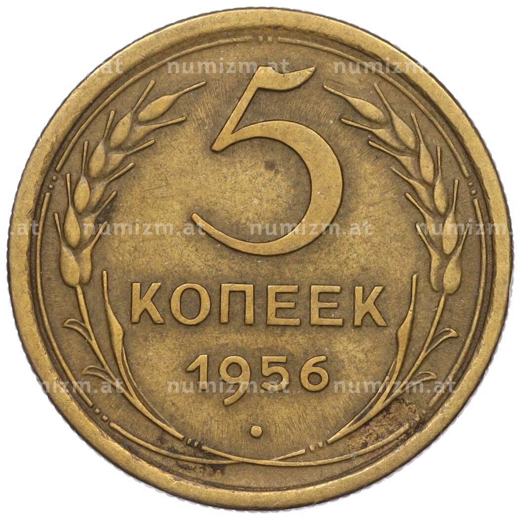 Монета 5 копеек 1956 года (Артикул: K12-00711): подробные характеристики, качественные фотографии в высоком разрешении, низкая цена.