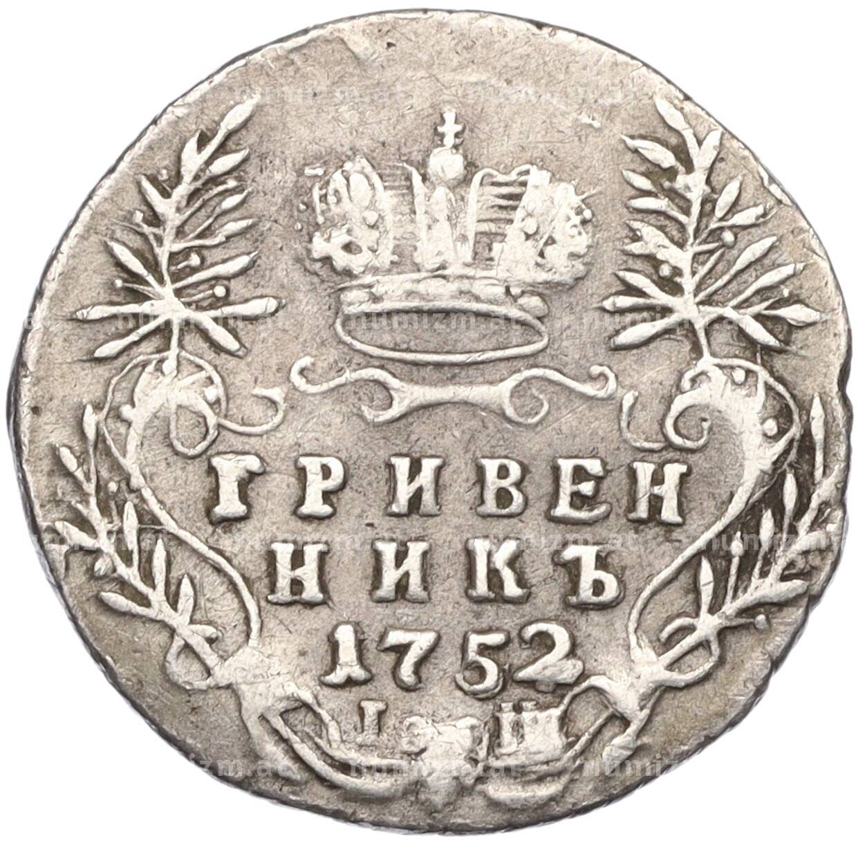Купить Гривенник 1752 года IШ по привлекательной цене можно в нашем интернет-магазине — Вам достаточно оформить заказ на сайте. Все монеты, представленные в каталоге, находятся в наличии на нашем складе.