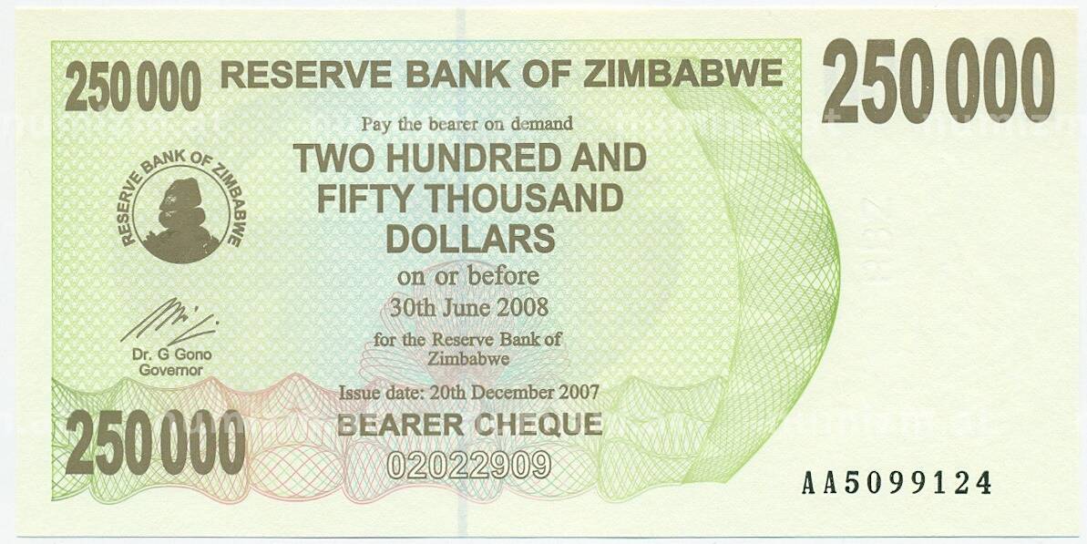 20.01.2025Интернет магазин «Нумизмат» предлагает приобрести 250000 долларов 2007 года Зимбабве.