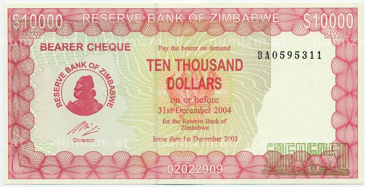 20.01.2025Интернет магазин «Нумизмат» предлагает приобрести 10000 долларов 2003 года Зимбабве.