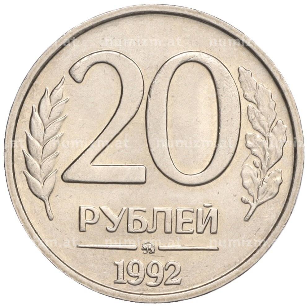 Интернет магазин «Нумизмат» предлагает приобрести 20 рублей 1992 года ММД.