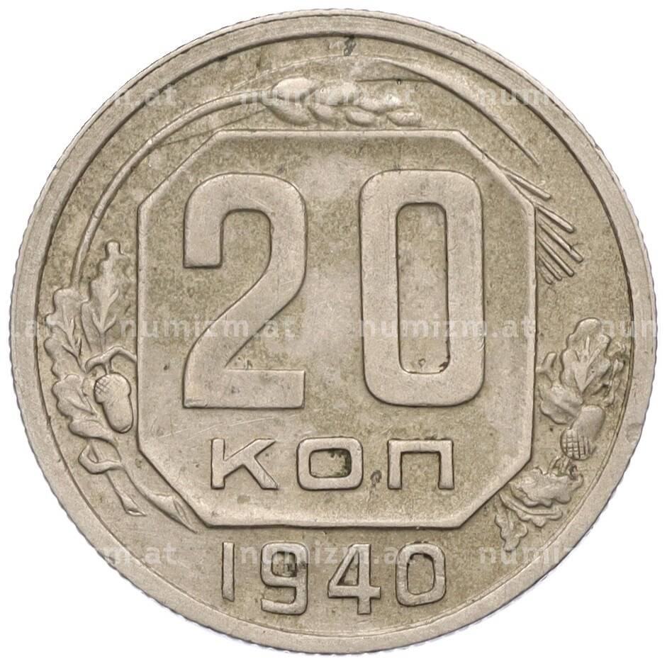 Монета 20 копеек 1940 года (Артикул: K12-03105): подробные характеристики, качественные фотографии в высоком разрешении, низкая цена.