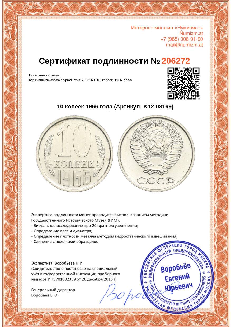 Интернет магазин «Нумизмат» предлагает приобрести 10 копеек 1966 года.