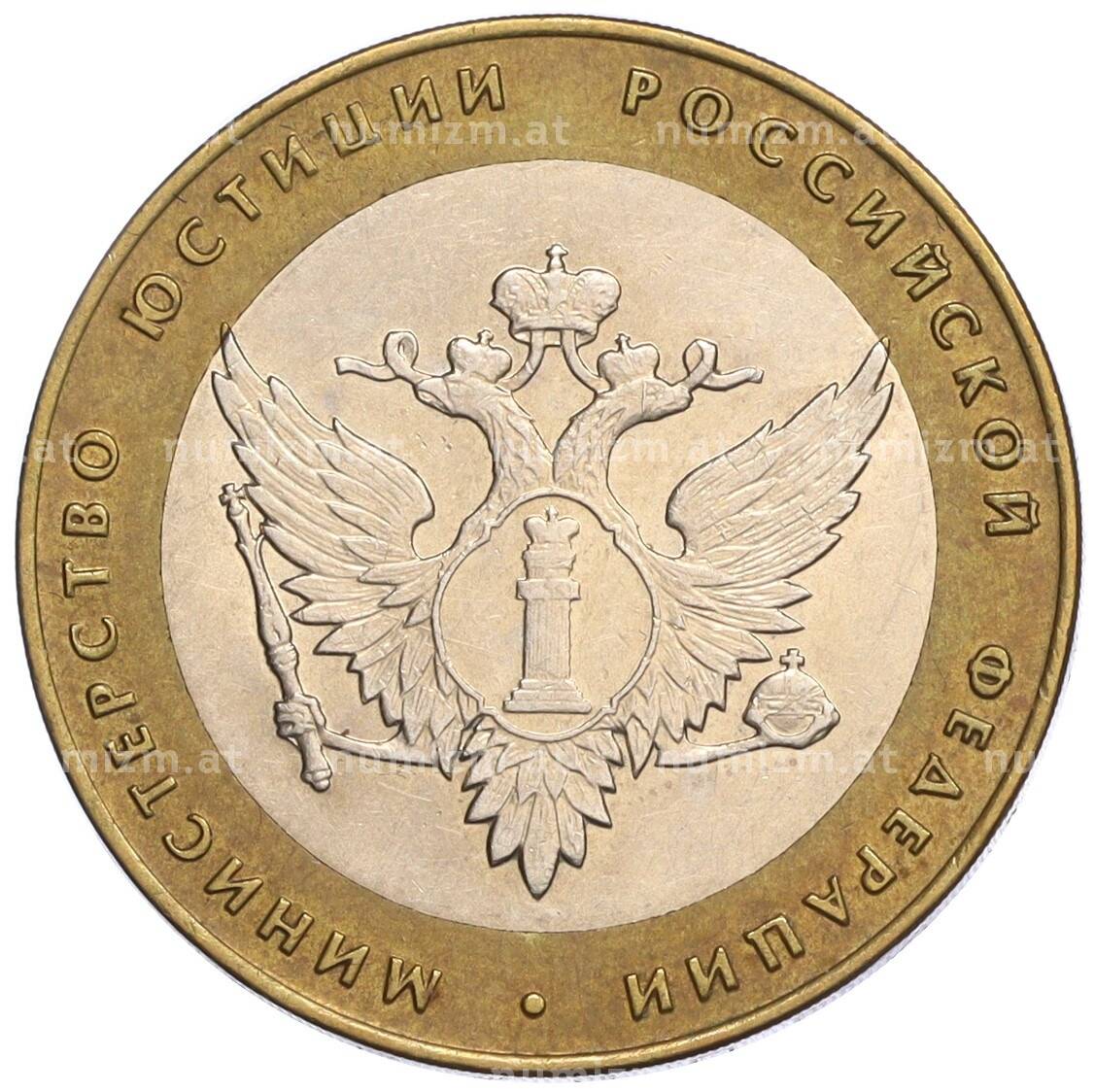 Интернет магазин «Нумизмат» предлагает приобрести 10 рублей 2002 года СПМД «Министерство юстиции».