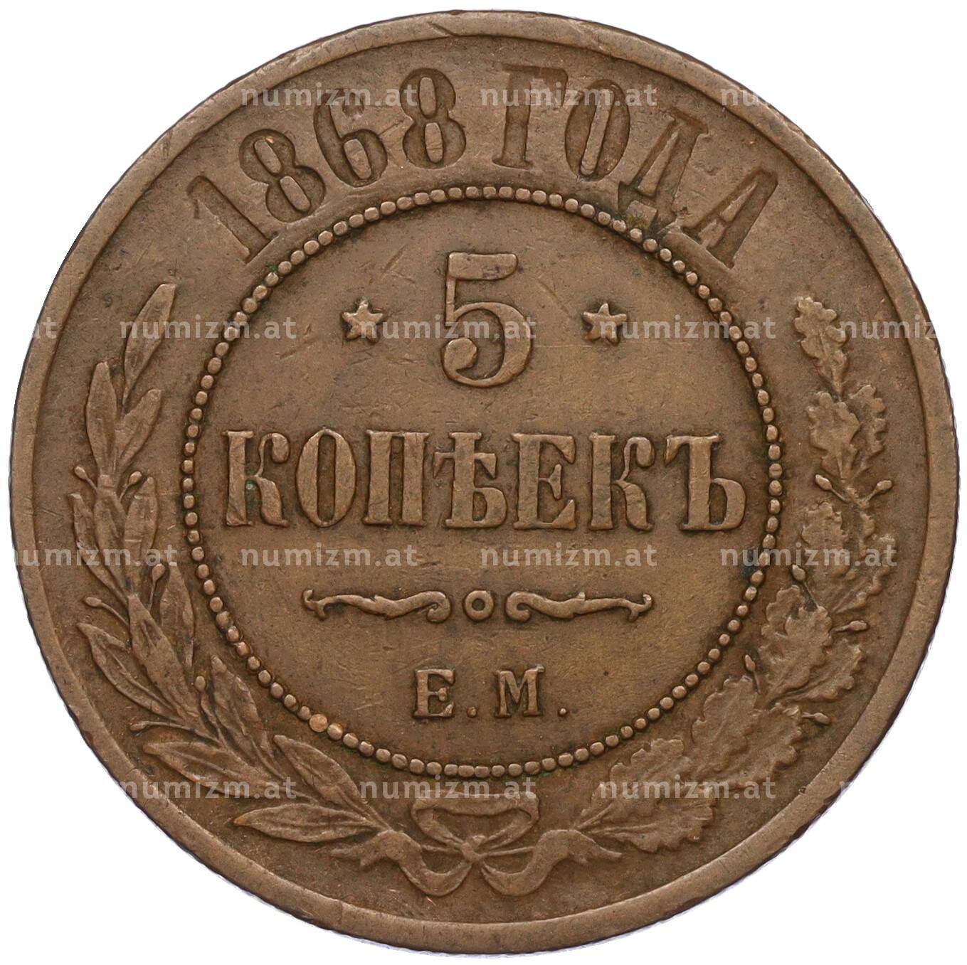 Купить 5 копеек 1868 года ЕМ по привлекательной цене можно в нашем интернет-магазине — Вам достаточно оформить заказ на сайте. Все монеты, представленные в каталоге, находятся в наличии на нашем складе.