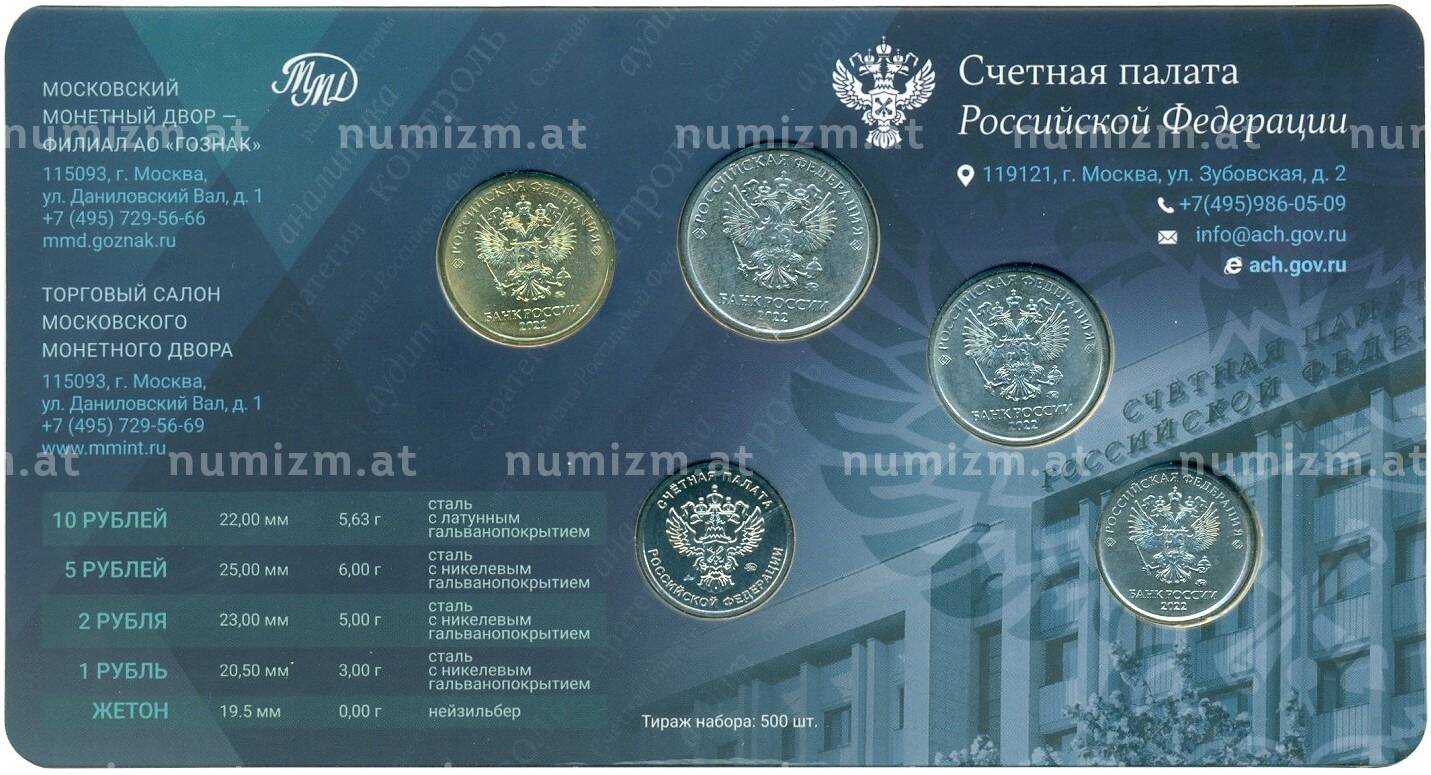 Купить Годовой набор тиражных монет 2022 года ММД «Счетная палата» (в блистере с медно-никелевым жетоном) по привлекательной цене можно в нашем интернет-магазине — Вам достаточно оформить заказ на сайте. Все монеты, представленные в каталоге, находятся в наличии на нашем складе.
