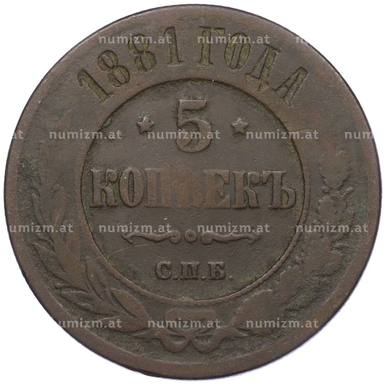 Купить 5 копеек 1881 года СПБ по привлекательной цене можно в нашем интернет-магазине — Вам достаточно оформить заказ на сайте. Все монеты, представленные в каталоге, находятся в наличии на нашем складе.