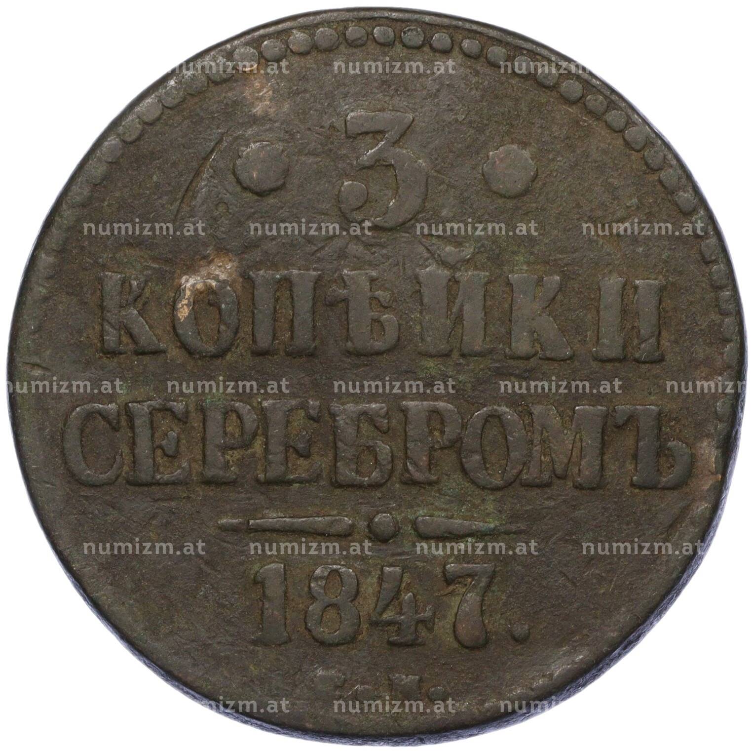 Купить 3 копейки серебром 1847 года СМ по привлекательной цене можно в нашем интернет-магазине — Вам достаточно оформить заказ на сайте. Все монеты, представленные в каталоге, находятся в наличии на нашем складе.