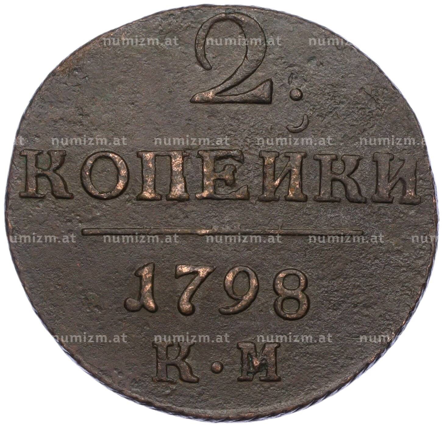 20.01.2025Интернет магазин «Нумизмат» предлагает приобрести 2 копейки 1798 года КМ.