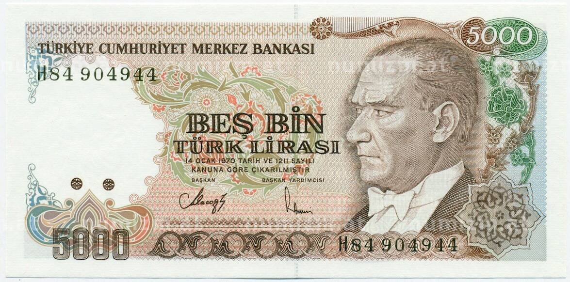 Банкнота 5000 лир 1988 года Турция (Артикул: K12-07027): подробные характеристики, качественные фотографии в высоком разрешении, низкая цена.