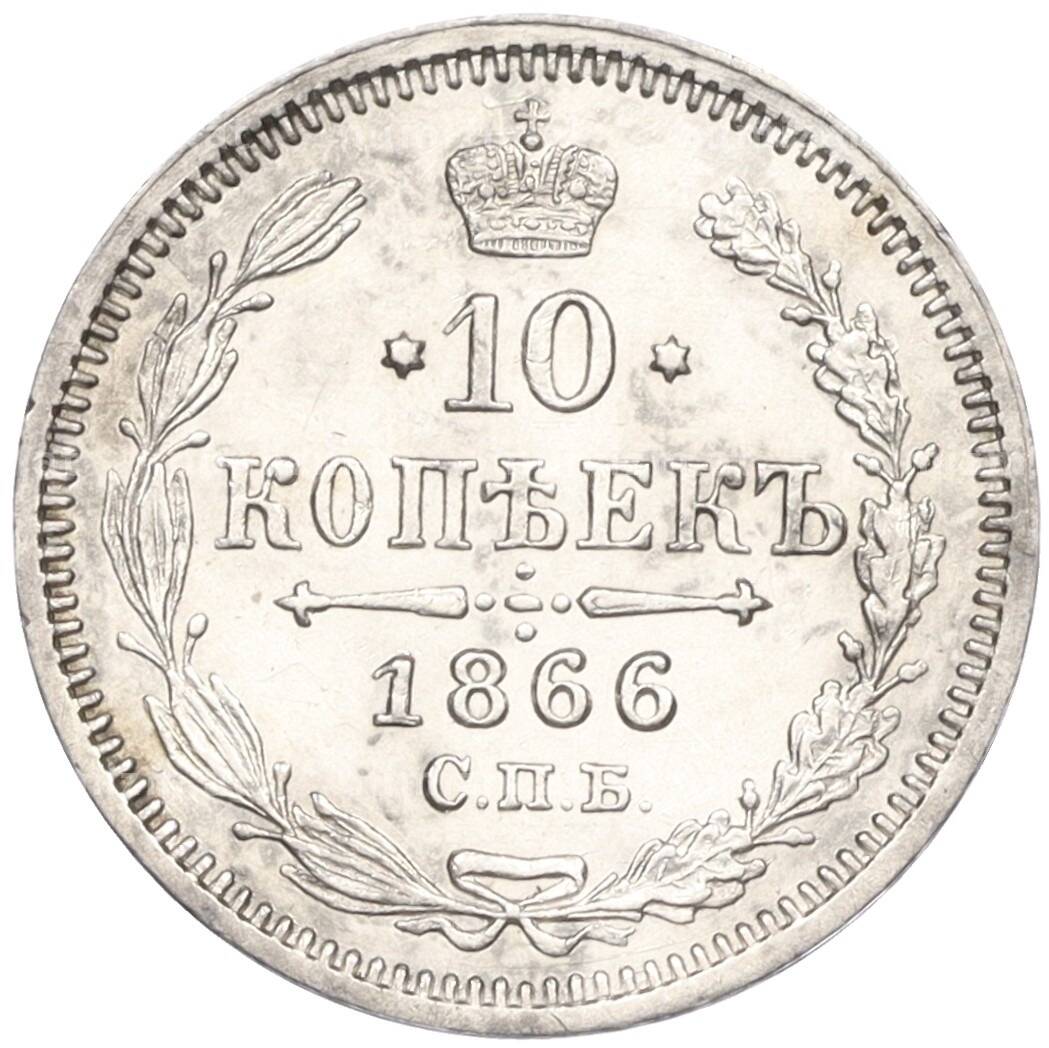 Купить 10 копеек 1866 года СПБ НФ по привлекательной цене можно в нашем интернет-магазине — Вам достаточно оформить заказ на сайте. Все монеты, представленные в каталоге, находятся в наличии на нашем складе.