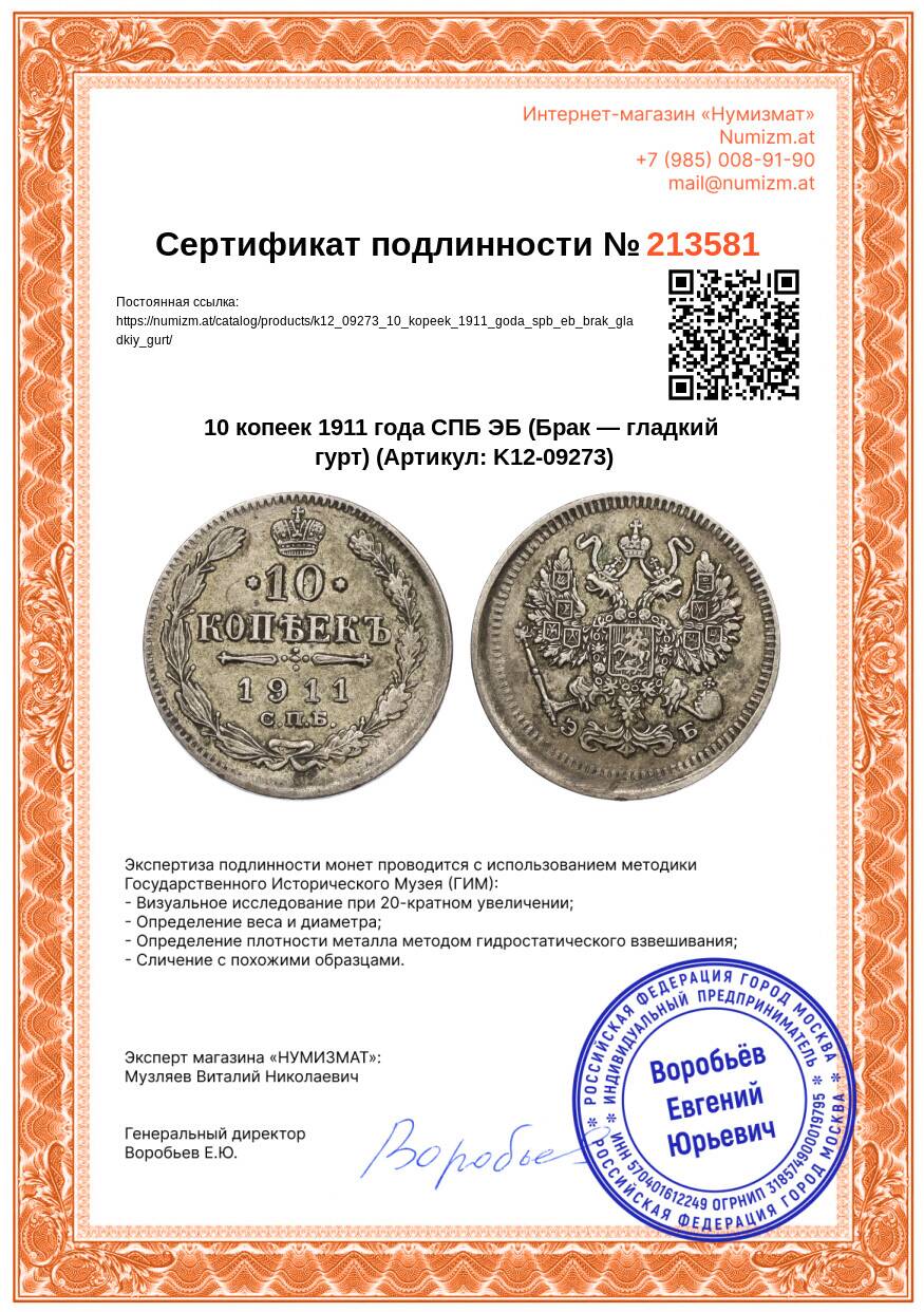 Купить 10 копеек 1911 года СПБ ЭБ (Брак — гладкий гурт) по привлекательной цене можно в нашем интернет-магазине — Вам достаточно оформить заказ на сайте. Все монеты, представленные в каталоге, находятся в наличии на нашем складе.