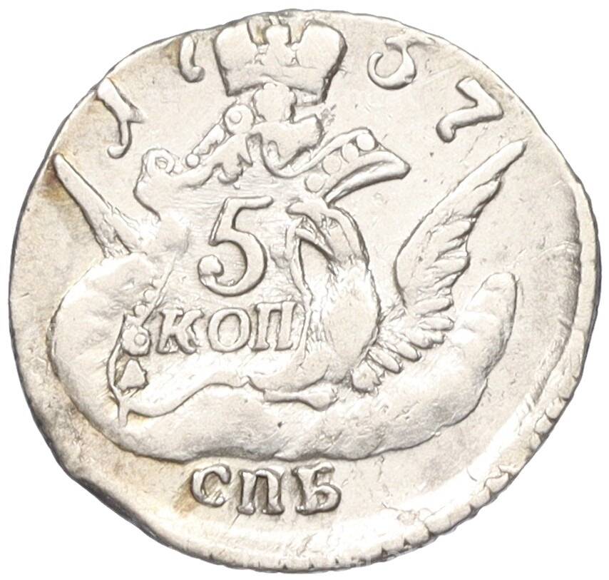 Купить 5 копеек 1757 года СПБ по привлекательной цене можно в нашем интернет-магазине — Вам достаточно оформить заказ на сайте. Все монеты, представленные в каталоге, находятся в наличии на нашем складе.