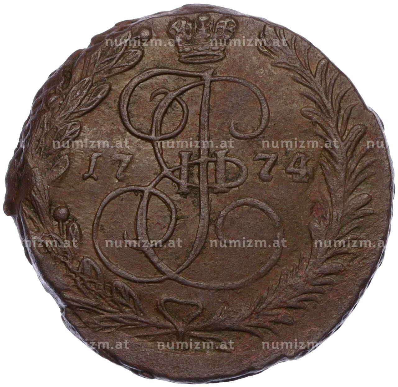 Купить 2 копейки 1774 года ЕМ по привлекательной цене можно в нашем интернет-магазине — Вам достаточно оформить заказ на сайте. Все монеты, представленные в каталоге, находятся в наличии на нашем складе.