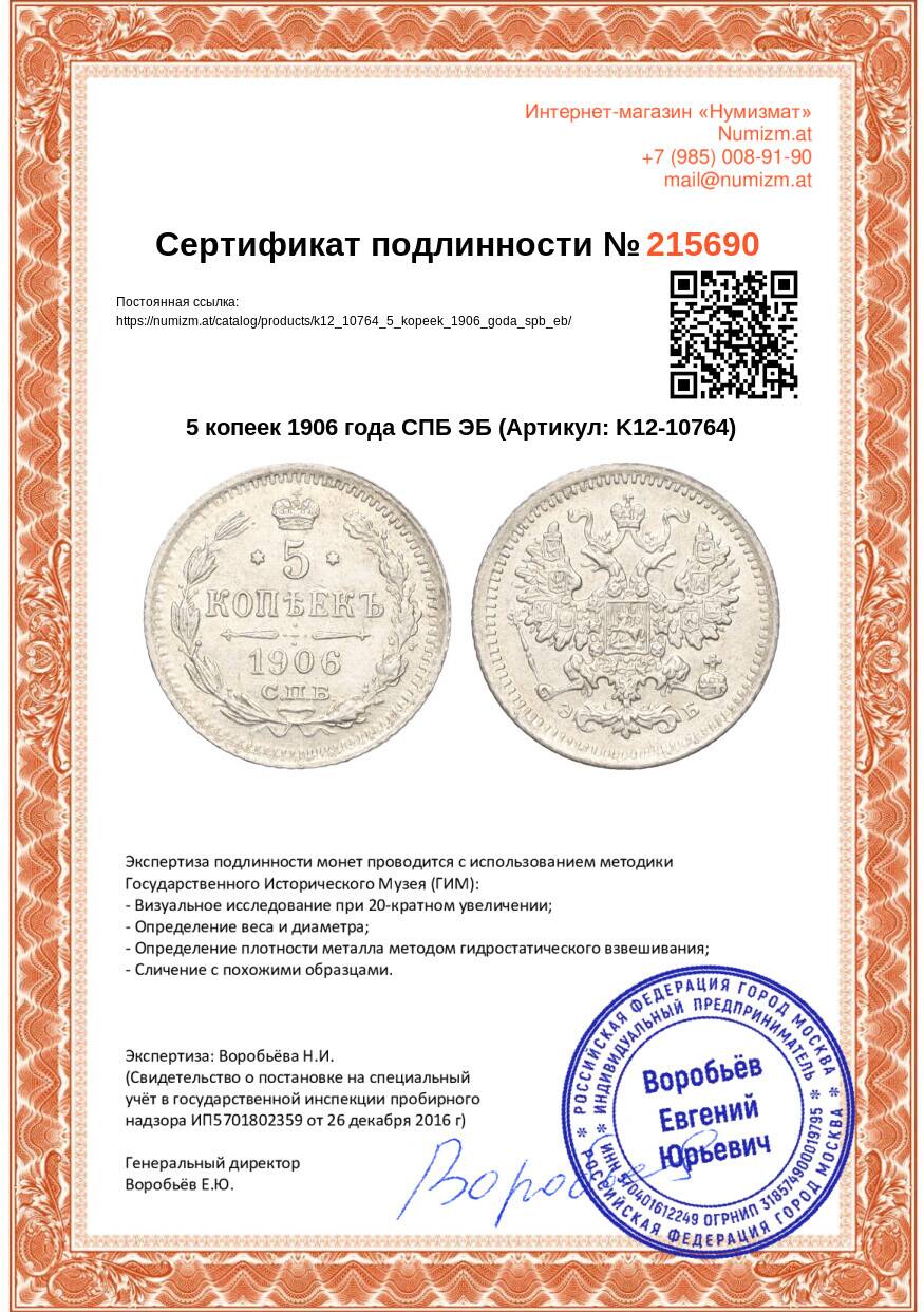 Купить 5 копеек 1906 года СПБ ЭБ по привлекательной цене можно в нашем интернет-магазине — Вам достаточно оформить заказ на сайте. Все монеты, представленные в каталоге, находятся в наличии на нашем складе.