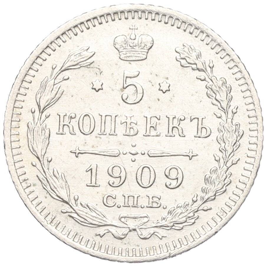 Купить 5 копеек 1909 года СПБ ЭБ по привлекательной цене можно в нашем интернет-магазине — Вам достаточно оформить заказ на сайте. Все монеты, представленные в каталоге, находятся в наличии на нашем складе.