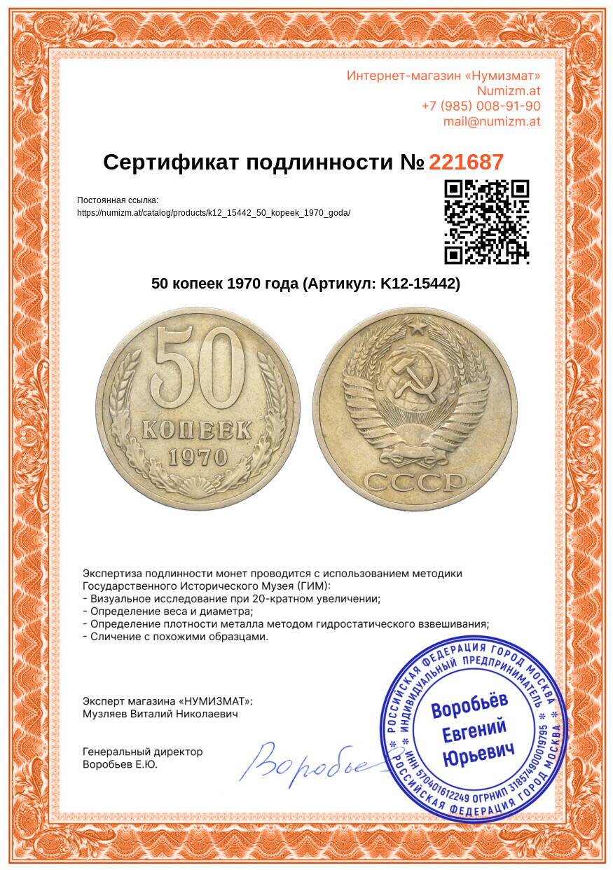 20.01.2025Интернет магазин «Нумизмат» предлагает приобрести 50 копеек 1970 года.