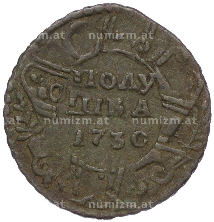Купить Полушка 1730 года по привлекательной цене можно в нашем интернет-магазине — Вам достаточно оформить заказ на сайте. Все монеты, представленные в каталоге, находятся в наличии на нашем складе.