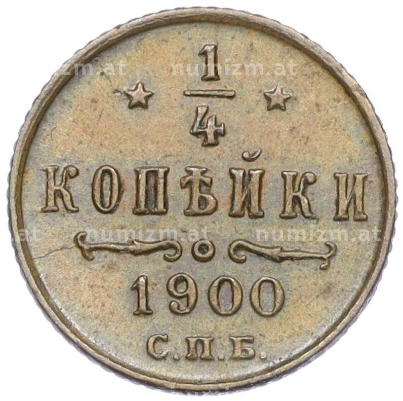 Купить 1/4 копейки 1900 года СПБ по привлекательной цене можно в нашем интернет-магазине — Вам достаточно оформить заказ на сайте. Все монеты, представленные в каталоге, находятся в наличии на нашем складе.
