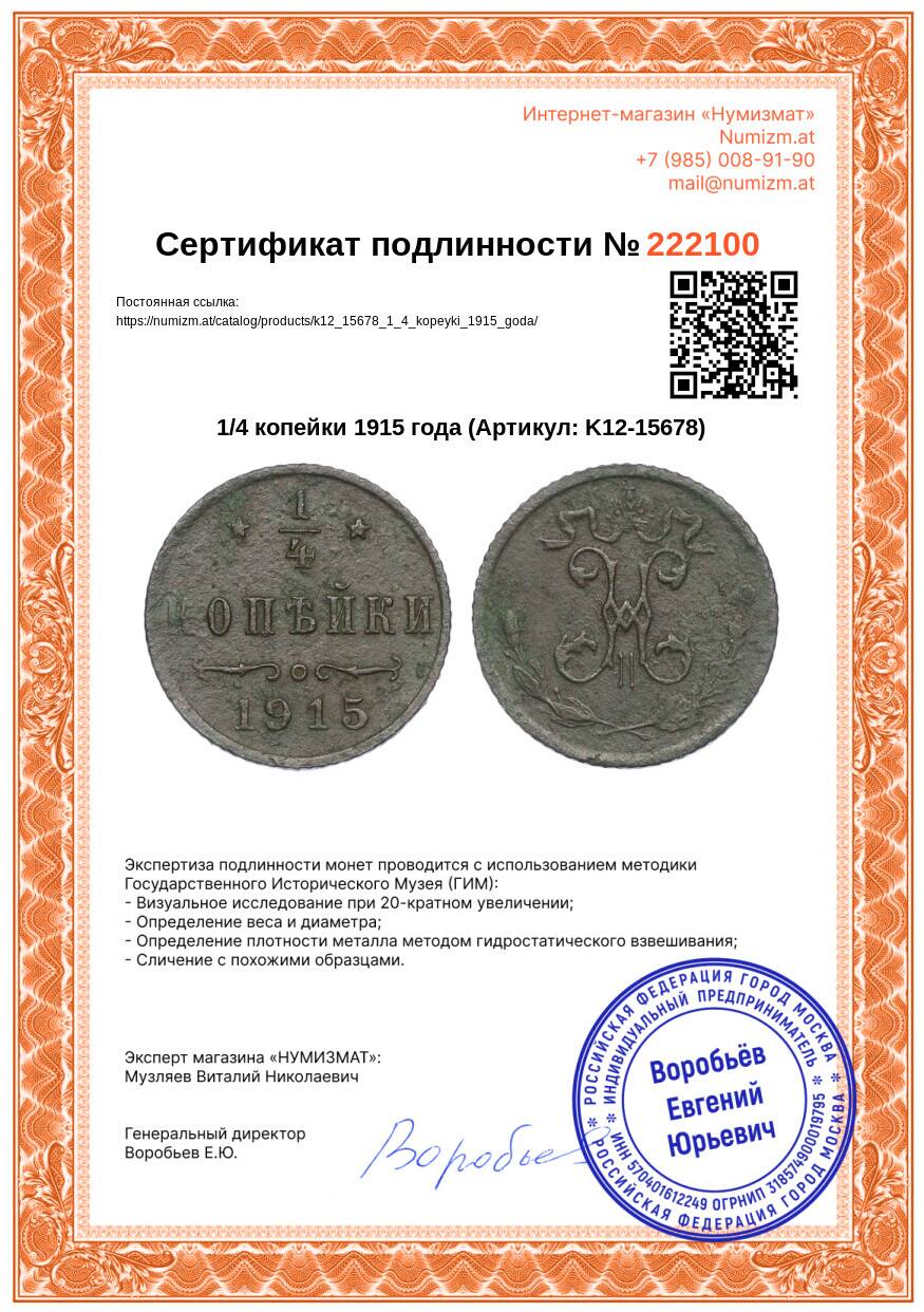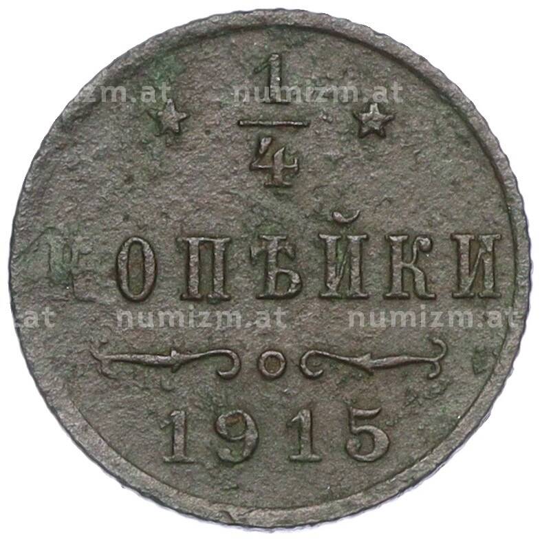 Купить 1/4 копейки 1915 года по привлекательной цене можно в нашем интернет-магазине — Вам достаточно оформить заказ на сайте. Все монеты, представленные в каталоге, находятся в наличии на нашем складе.