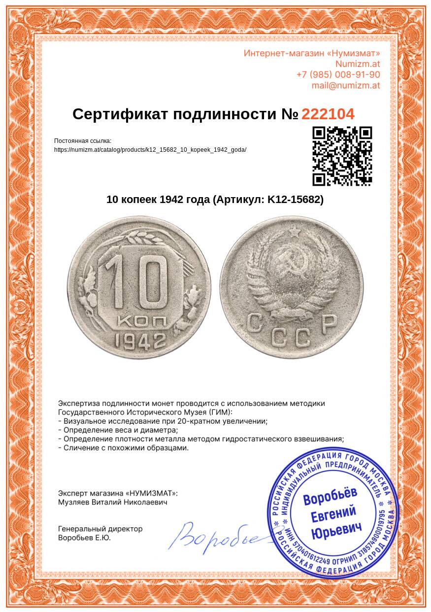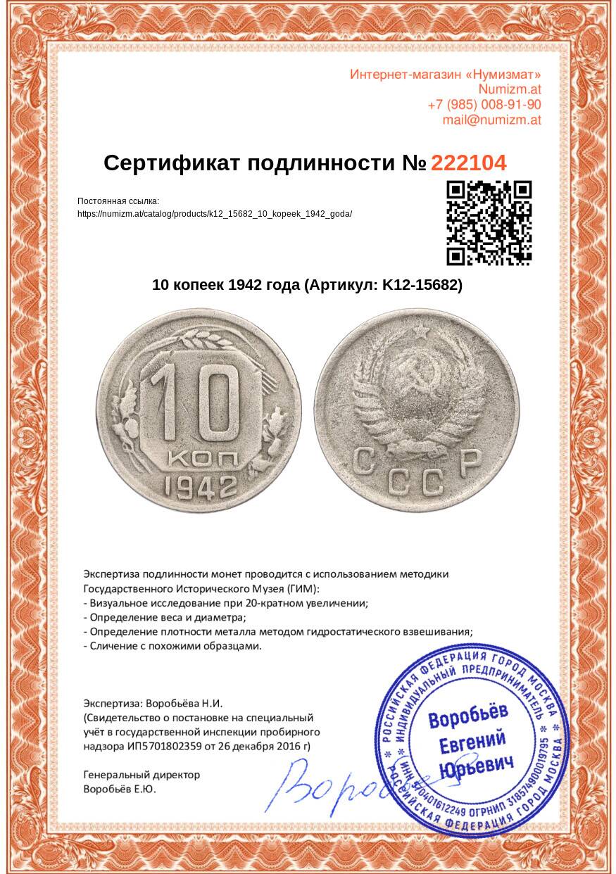 Купить 10 копеек 1942 года по привлекательной цене можно в нашем интернет-магазине — Вам достаточно оформить заказ на сайте. Все монеты, представленные в каталоге, находятся в наличии на нашем складе.