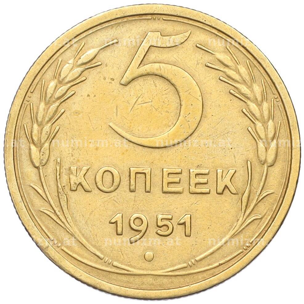 Монета 5 копеек 1951 года (Артикул: K12-16287): подробные характеристики, качественные фотографии в высоком разрешении, низкая цена.