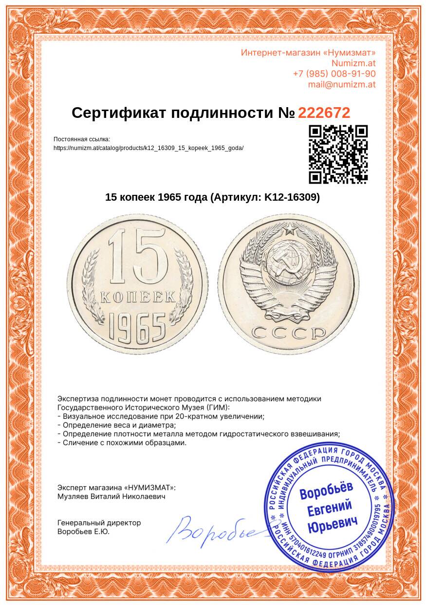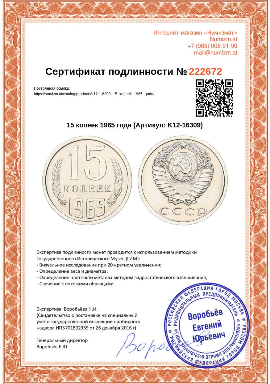 Купить 15 копеек 1965 года по привлекательной цене можно в нашем интернет-магазине — Вам достаточно оформить заказ на сайте. Все монеты, представленные в каталоге, находятся в наличии на нашем складе.