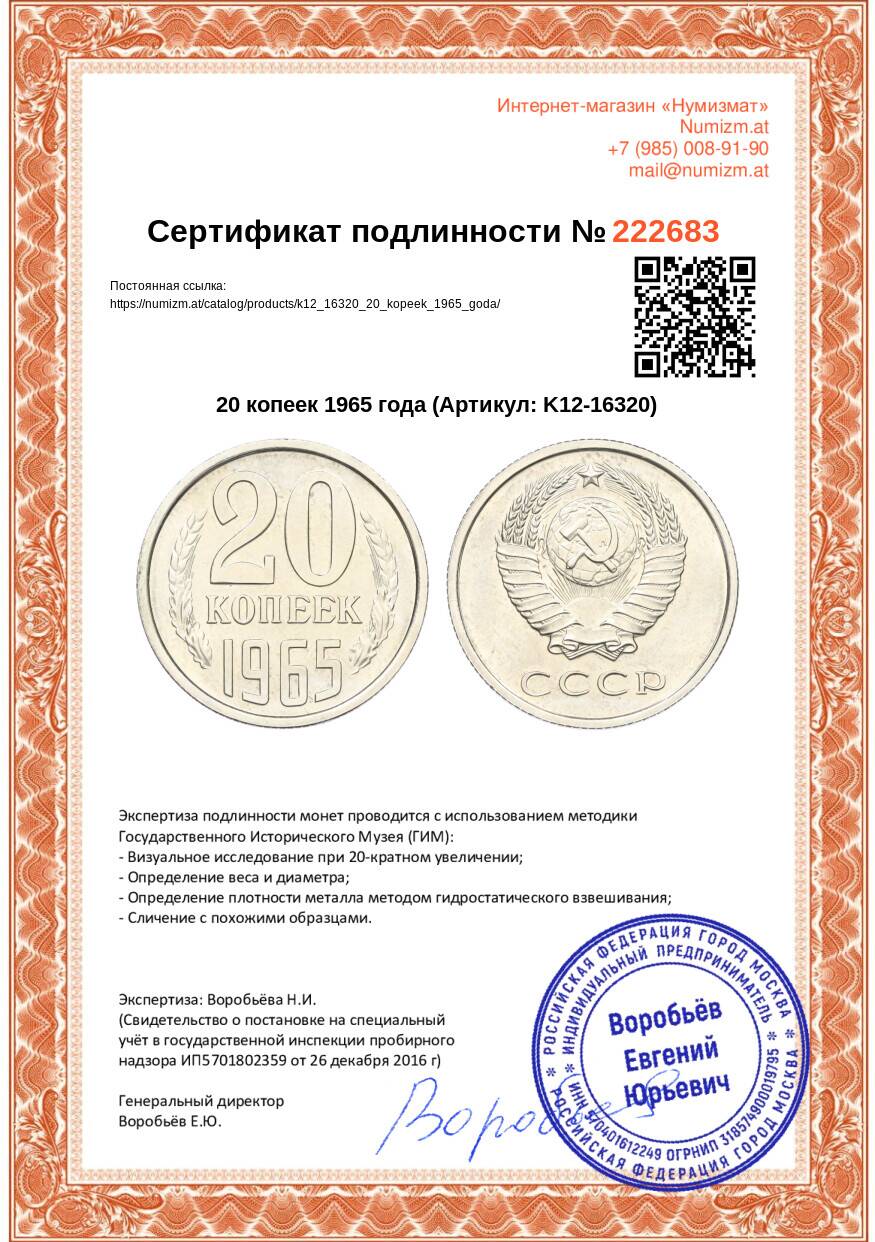 Купить 20 копеек 1965 года по привлекательной цене можно в нашем интернет-магазине — Вам достаточно оформить заказ на сайте. Все монеты, представленные в каталоге, находятся в наличии на нашем складе.