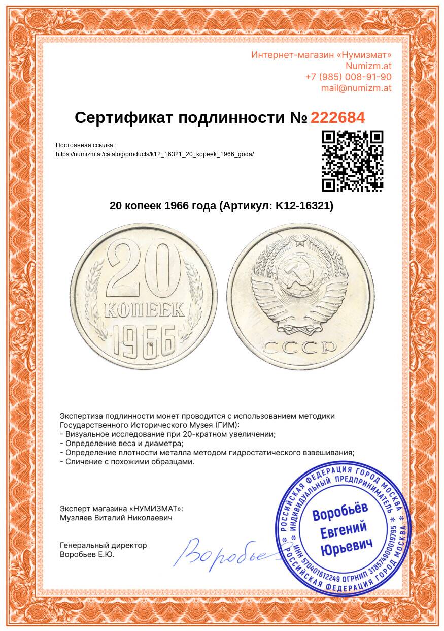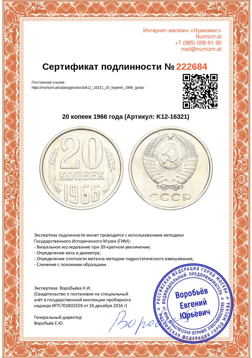 Купить 20 копеек 1966 года по привлекательной цене можно в нашем интернет-магазине — Вам достаточно оформить заказ на сайте. Все монеты, представленные в каталоге, находятся в наличии на нашем складе.
