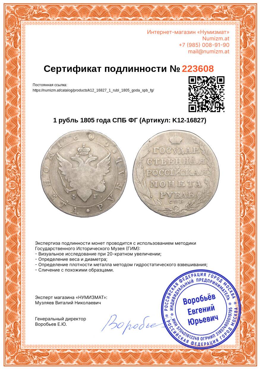 Купить 1 рубль 1805 года СПБ ФГ по привлекательной цене можно в нашем интернет-магазине — Вам достаточно оформить заказ на сайте. Все монеты, представленные в каталоге, находятся в наличии на нашем складе.