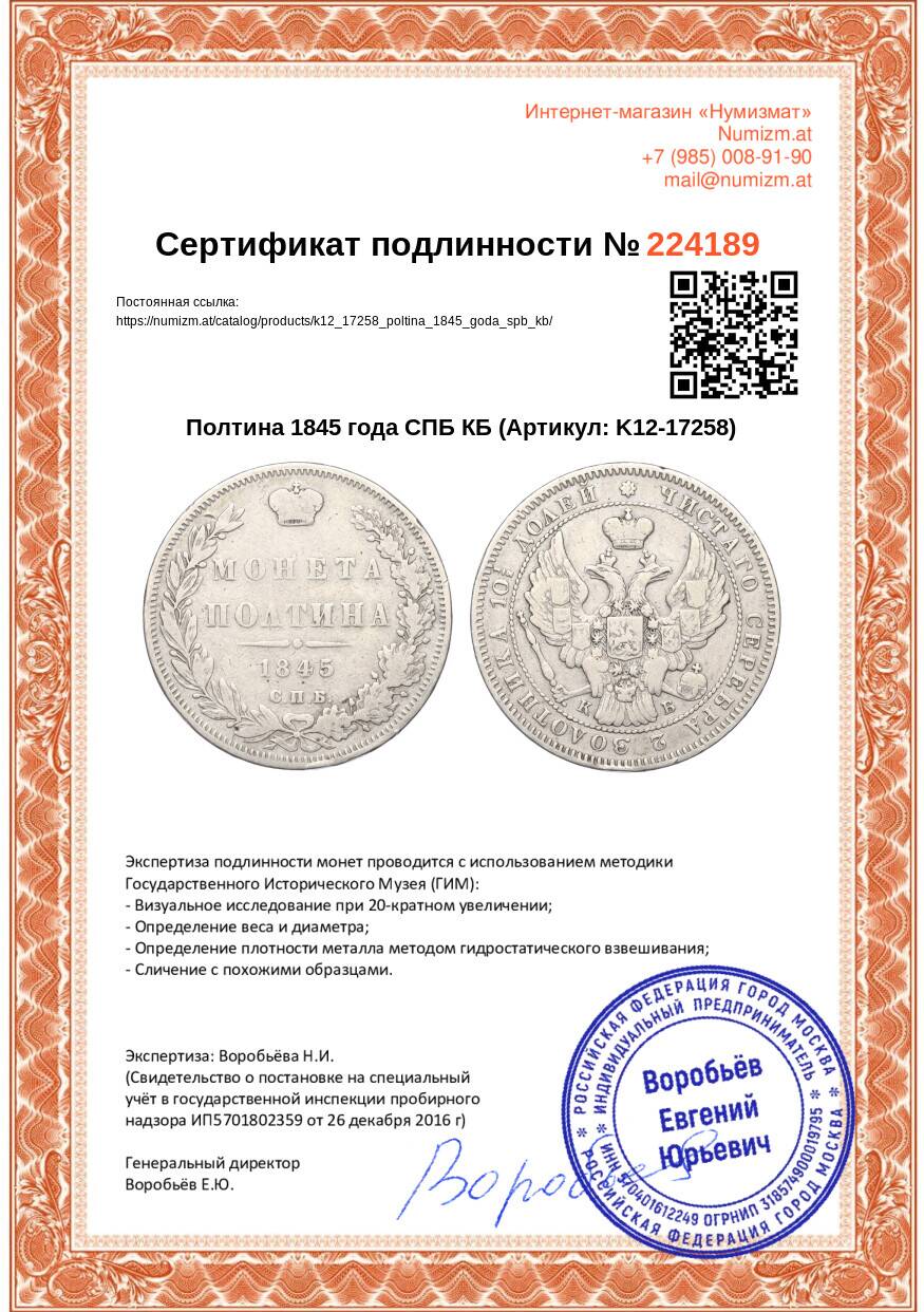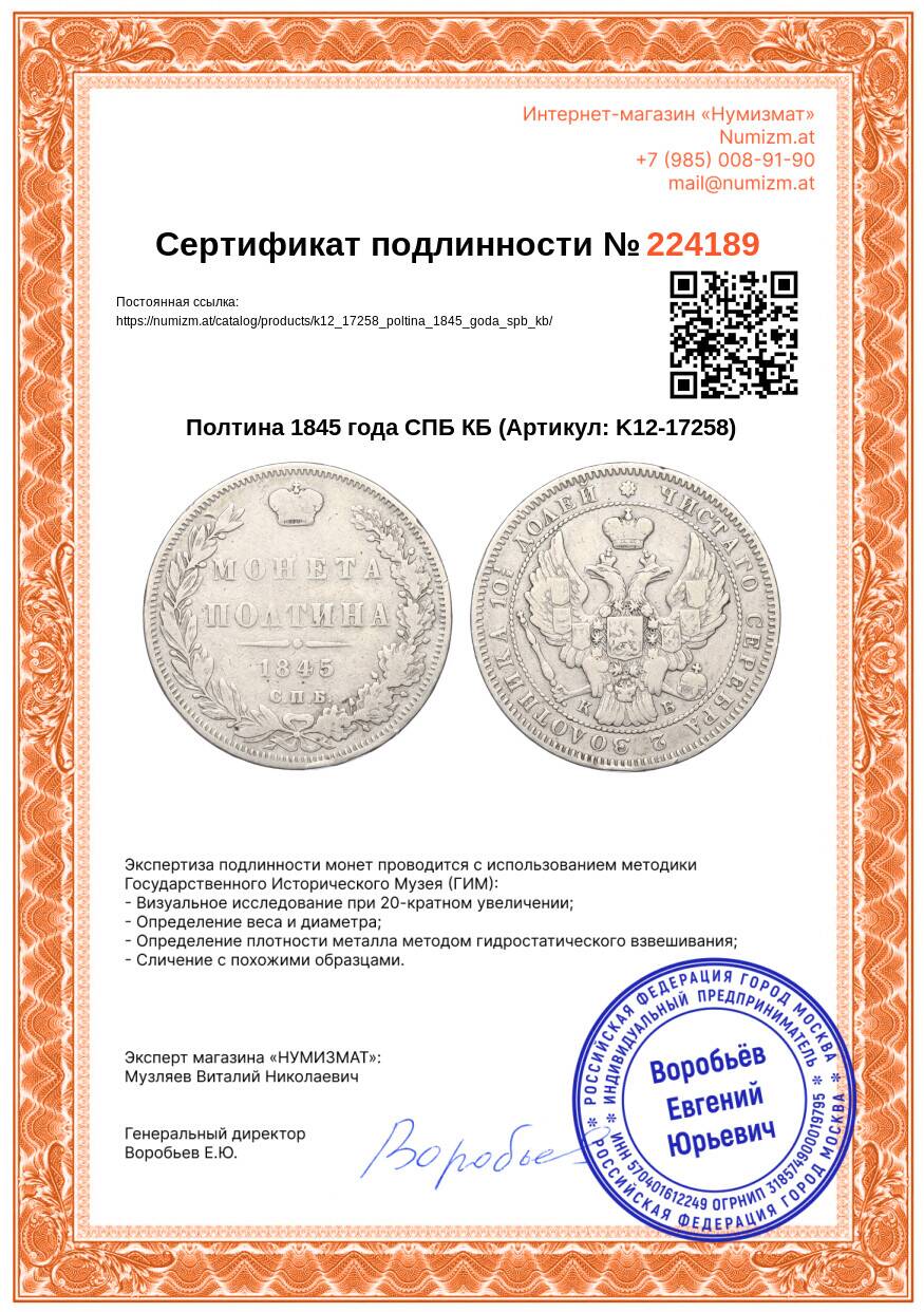 Купить Полтина 1845 года СПБ КБ по привлекательной цене можно в нашем интернет-магазине — Вам достаточно оформить заказ на сайте. Все монеты, представленные в каталоге, находятся в наличии на нашем складе.