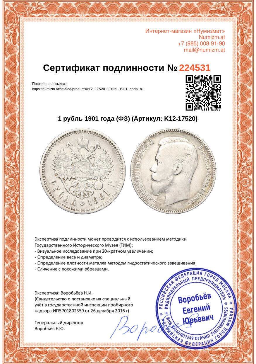 Купить 1 рубль 1901 года (ФЗ) по привлекательной цене можно в нашем интернет-магазине — Вам достаточно оформить заказ на сайте. Все монеты, представленные в каталоге, находятся в наличии на нашем складе.