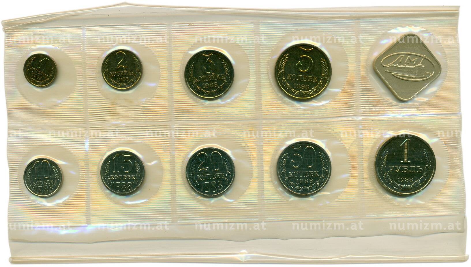 • Годовой набор монет СССР 1988 года ЛМД (20 копеек — Федорин №166) (Артикул: K12-18867) — Фото №1 Годовой набор монет СССР 1988 года ЛМД (20 копеек — Федорин №166) (Артикул: K12-18867) — Фото №2