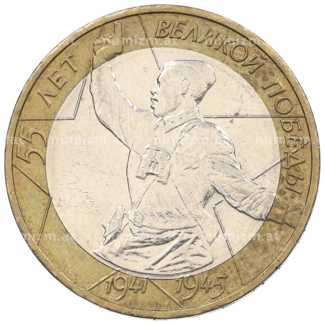Монета 10 рублей 2000 года ММД «55 лет Великой Победы» (Артикул: K12-19084): подробные характеристики, качественные фотографии в высоком разрешении, низкая цена.