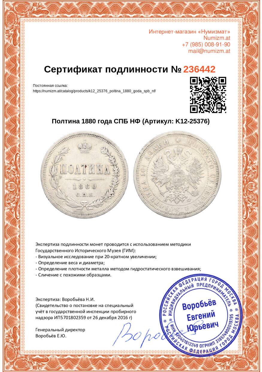 Купить Полтина 1880 года СПБ НФ по привлекательной цене можно в нашем интернет-магазине — Вам достаточно оформить заказ на сайте. Все монеты, представленные в каталоге, находятся в наличии на нашем складе.