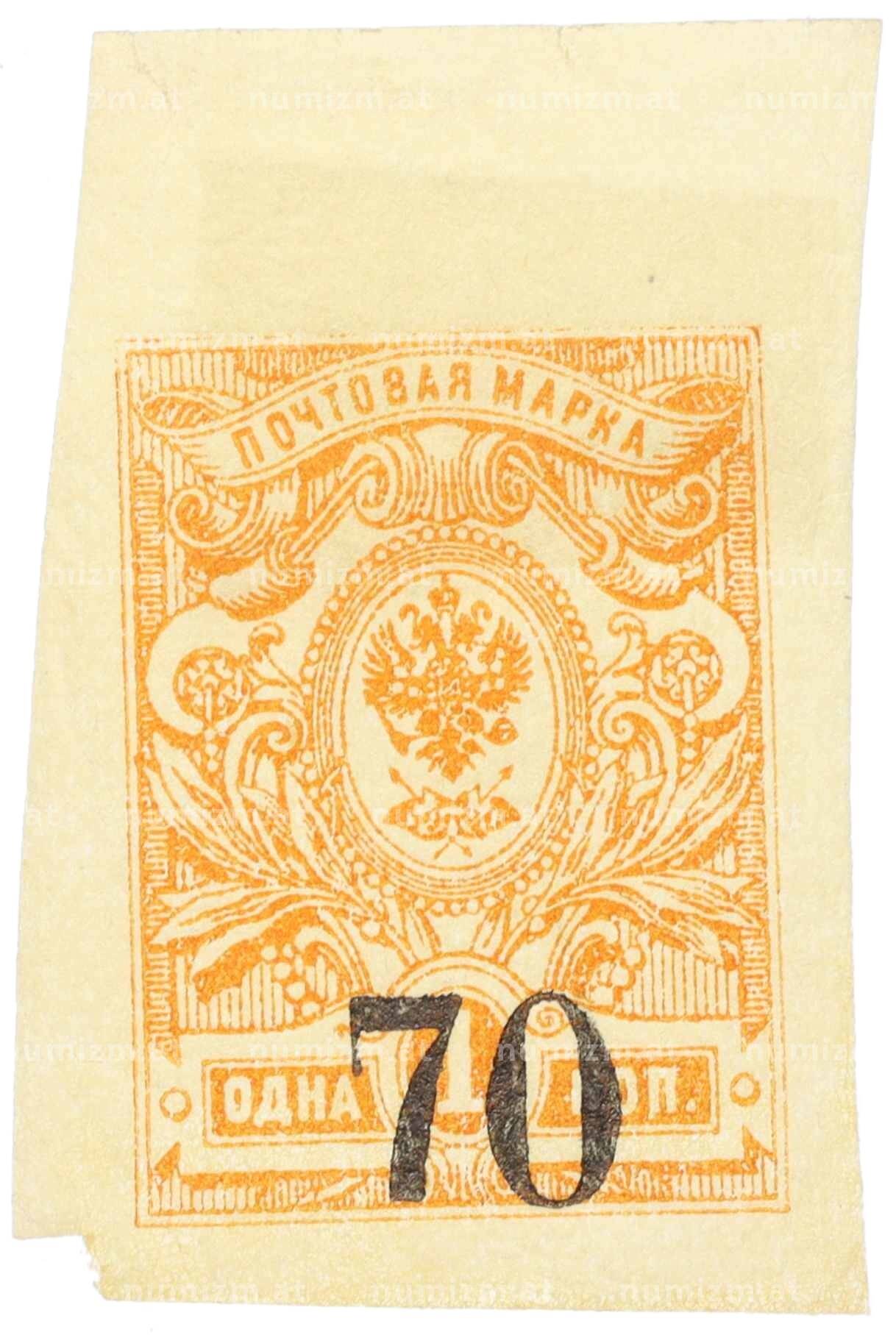 Почтовая марка 70 копеек 1919 года Омск (Армия Колчака) (Артикул: K12-26484): подробные характеристики, качественные фотографии в высоком разрешении, низкая цена.