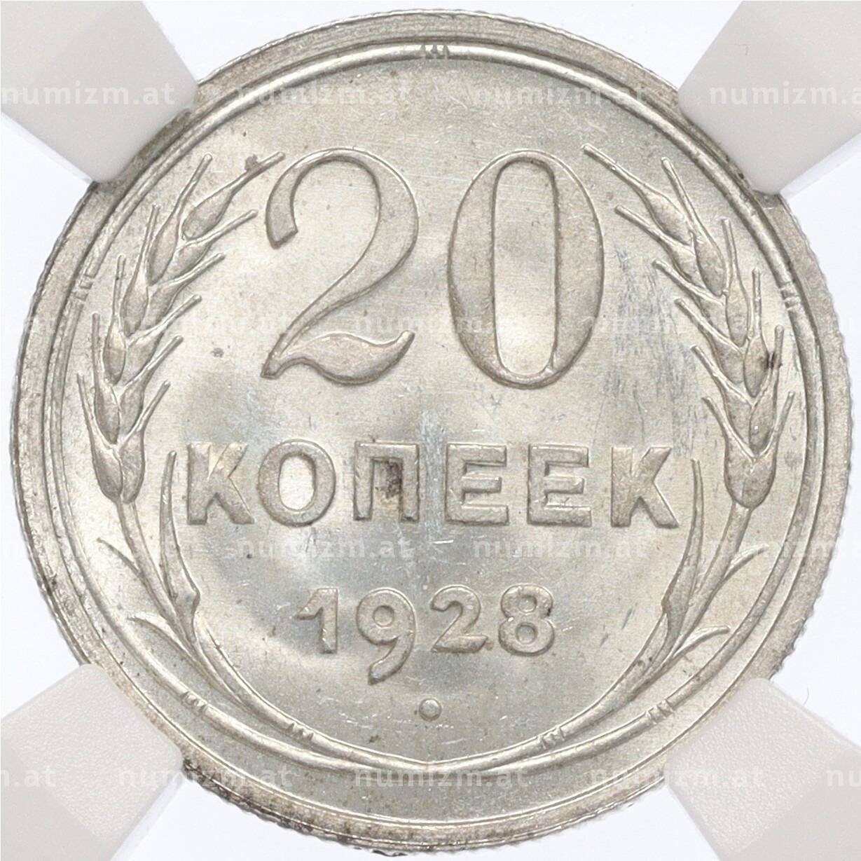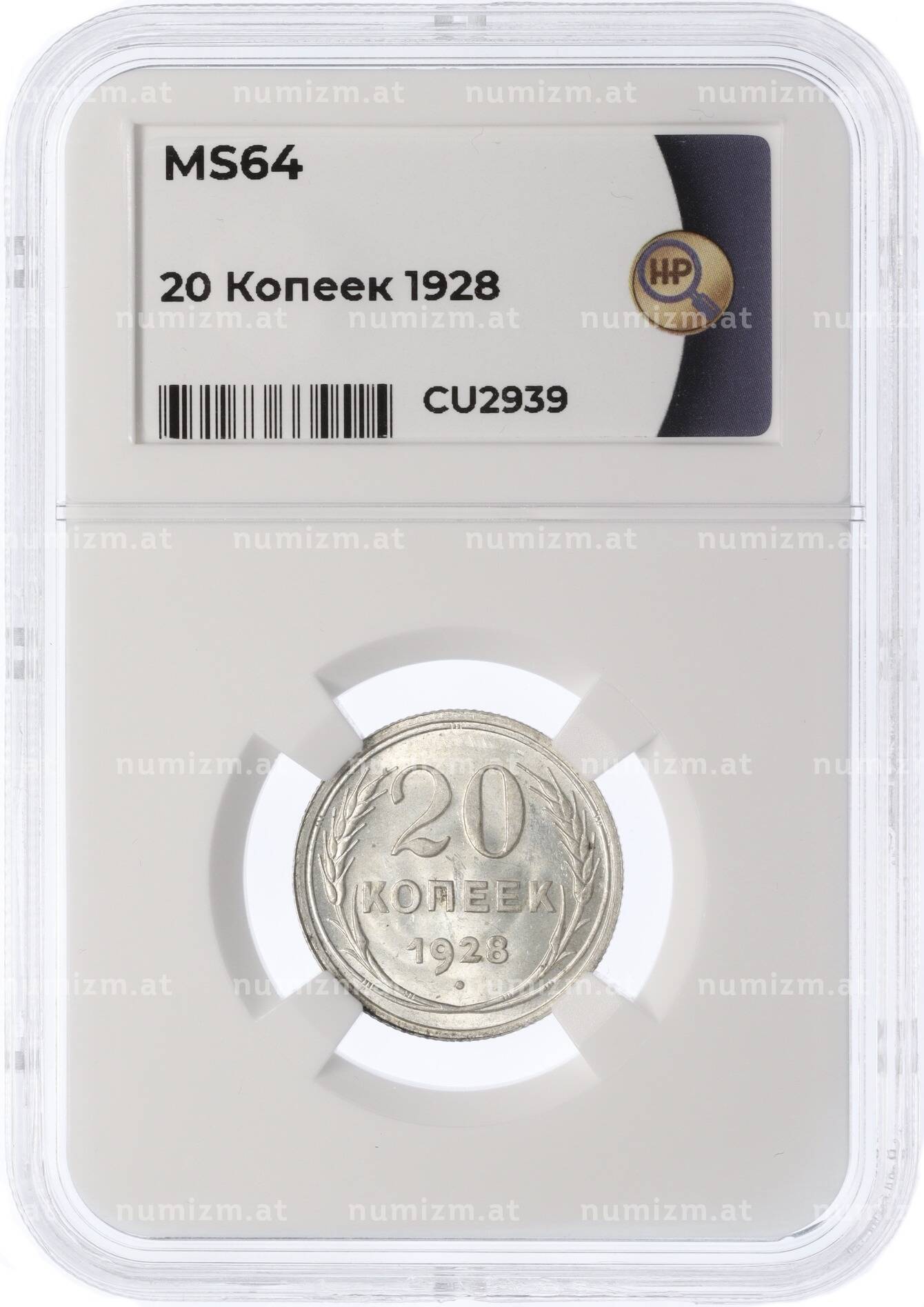 Купить 20 копеек 1928 года — в слабе ННР (MS64) по привлекательной цене можно в нашем интернет-магазине — Вам достаточно оформить заказ на сайте. Все монеты, представленные в каталоге, находятся в наличии на нашем складе.