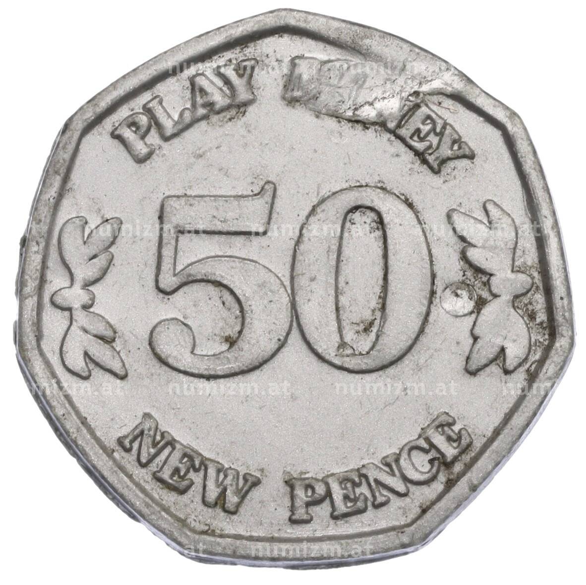 Купить Жетон игровой (игрушечные деньги) «50 новых пенсов» Великобритания по привлекательной цене можно в нашем интернет-магазине — Вам достаточно оформить заказ на сайте. Все монеты, представленные в каталоге, находятся в наличии на нашем складе.