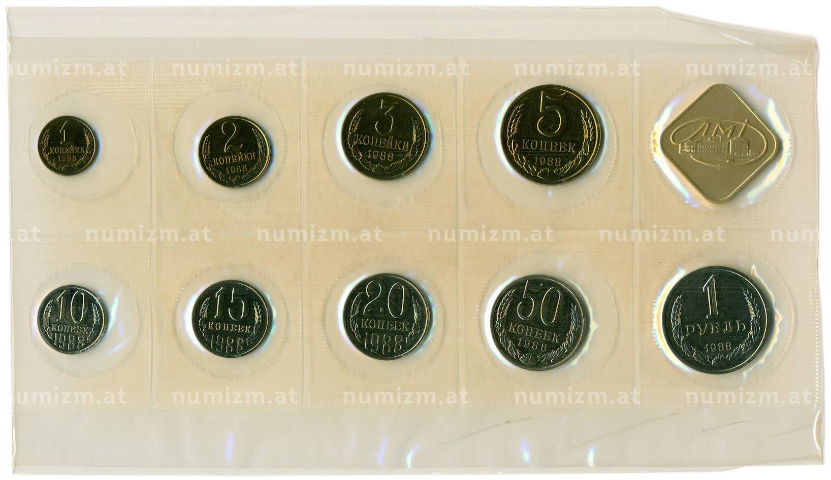 Интернет магазин «Нумизмат» предлагает приобрести Годовой набор монет СССР 1988 года ЛМД (20 копеек — Федорин №166).