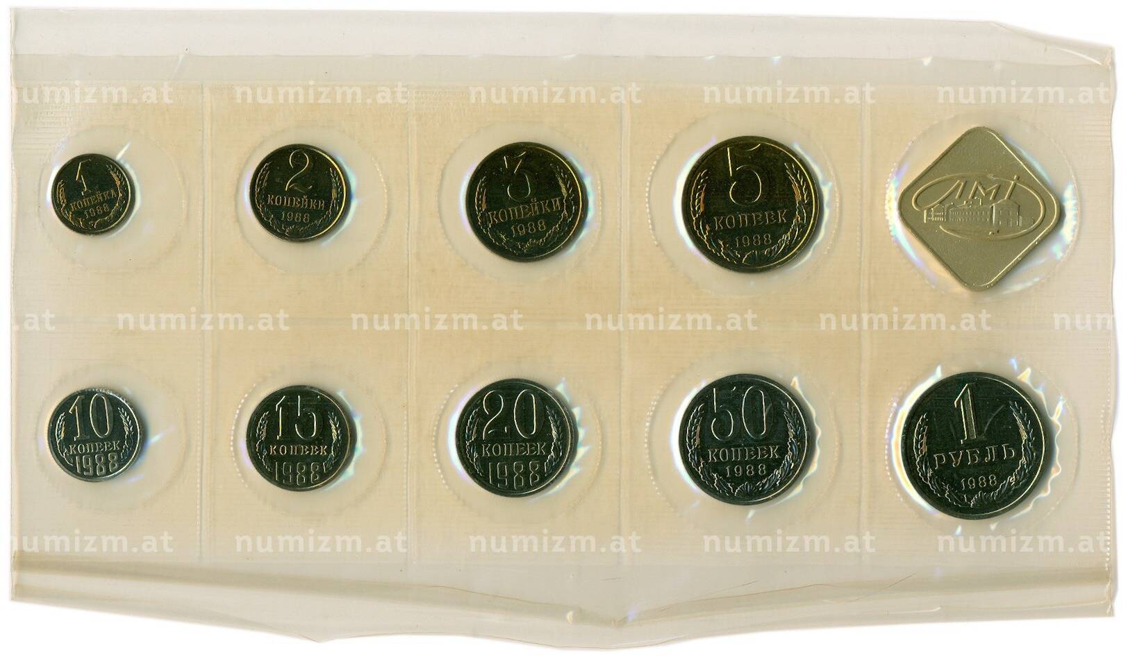 Интернет магазин «Нумизмат» предлагает приобрести Годовой набор монет СССР 1988 года ЛМД (20 копеек — Федорин №166).
